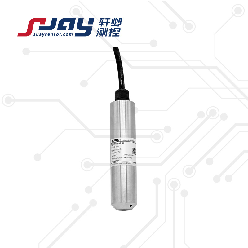 SUAY20液位傳感器 液位變送器 數字液位傳感器 水位傳感器采用MEMS技術為核心的高靈敏度硅壓阻感壓芯片,是基于流體靜力學原理,通過對液體壓強的測量轉換為液位高度。該液位傳感器結構可靠,帶通氣導管的液位測量專用電纜及專業的水密封技術,既保證了產品的密封性,又使得參考壓力腔與大氣相通,從而使該系列產品的使用不受不同地域環境的限制,既保證了產品的長期穩定性,又極大提高了該款液位傳感器的綜合使用精度。全密封潛入式測量,一體化結構和標準化的輸出信號,為現場使用和自動化控制提供了方便。再通過合理的選擇、設計接液材料、電纜、護管等,可對不同介質的液位進行投入式或插入式測量,適用于城市供排水、污水處理、水池、水文檢測、水庫、河道、海洋等水下液位的長期測量。